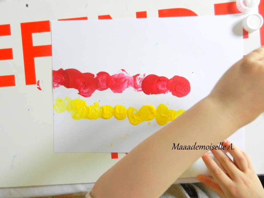 Pour la dernière chenille, elle a mélangé ensembles les trois couleurs.